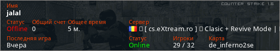 Играет на Counter Strike 1.6 сервере. Страна: РумынияПервый раз замечен 09:03 10.01.2026