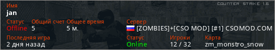 Последний раз был в сети 2 дня назад Игрок с таким ником замечен на 32 серверах