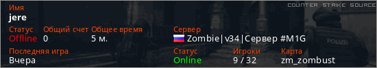 Играет на Counter Strike Source сервере. Страна: РоссияПервый раз замечен 01:55 26.02.2026