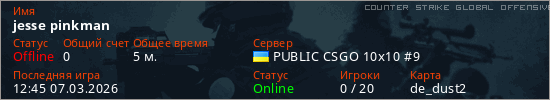 Играет на Counter Strike Global Offensive сервере. Страна: УкраинаПервый раз замечен 12:37 07.03.2026