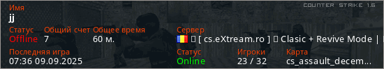 Играет на Counter Strike 1.6 сервере. Страна: РумынияПервый раз замечен 01:10 10.11.2024