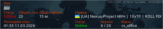 Играет на Counter Strike Global Offensive сервере. Страна: УкраинаПервый раз замечен 00:13 11.03.2026