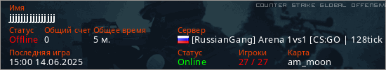 Играет на Counter Strike Global Offensive сервере. Страна: РоссияПервый раз замечен 14:17 14.06.2025
