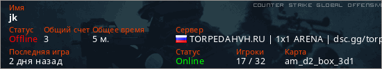 Играет на Counter Strike Global Offensive сервере. Страна: РоссияПервый раз замечен 23:52 07.04.2026