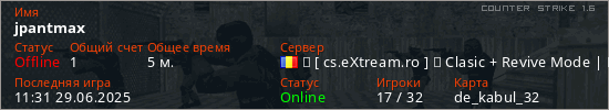 Играет на Counter Strike 1.6 сервере. Страна: РумынияПервый раз замечен 11:29 29.06.2025
