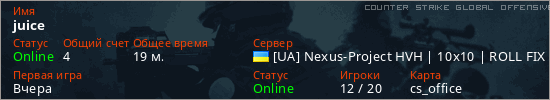 Играет на Counter Strike Global Offensive сервере. Страна: УкраинаПервый раз замечен 15:54 12.03.2026