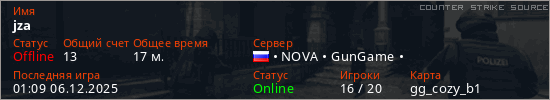 Играет на Counter Strike Source сервере. Страна: РоссияПервый раз замечен 00:15 17.05.2025