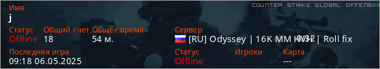 Играет на Counter Strike Global Offensive сервере. Страна: РоссияПервый раз замечен 01:15 20.04.2025