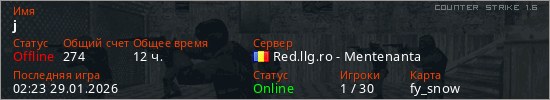Играет на Counter Strike 1.6 сервере. Страна: РумынияПервый раз замечен 11:18 01.08.2023