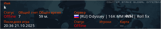 Играет на Counter Strike Global Offensive сервере. Страна: РоссияПервый раз замечен 14:07 12.04.2025