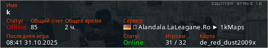 Последний раз был в сети 08:41 31.10.2025 Игрок с таким ником замечен на 51 сервере