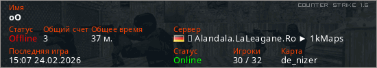 Последний раз был в сети 15:07 24.02.2026 Игрок с таким ником замечен на 15 серверах