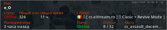 Последний раз был в сети Час назад Игрок с таким ником замечен на 22 серверах