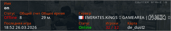 Последний раз был в сети 18:52 26.03.2026 Игрок с таким ником замечен на 16 серверах