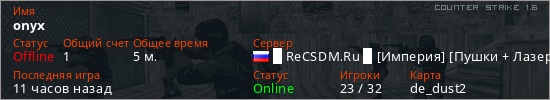 Последний раз был в сети 9 часов назад Игрок с таким ником замечен на 16 серверах