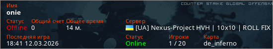 Играет на Counter Strike Global Offensive сервере. Страна: УкраинаПервый раз замечен 14:31 10.03.2026