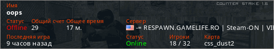Последний раз был в сети 7 часов назад Игрок с таким ником замечен на 32 серверах