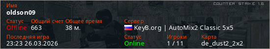 Играет на Counter Strike 1.6 сервере. Страна: РоссияПервый раз замечен 21:46 22.02.2026