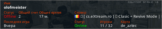 Последний раз был в сети Вчера Игрок с таким ником замечен на 18 серверах