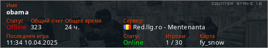 Играет на Counter Strike 1.6 сервере. Страна: РумынияПервый раз замечен 16:23 23.06.2022