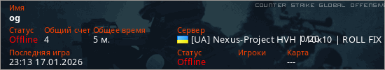 Играет на Counter Strike Global Offensive сервере. Страна: УкраинаПервый раз замечен 23:11 17.01.2026