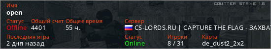 Играет на Counter Strike 1.6 сервере. Страна: РоссияПервый раз замечен 14:10 01.11.2020