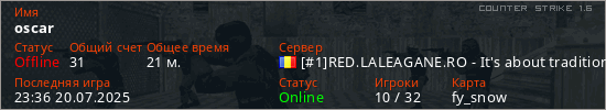 Играет на Counter Strike 1.6 сервере. Страна: РумынияПервый раз замечен 06:41 04.04.2023