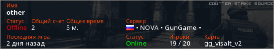 Играет на Counter Strike Source сервере. Страна: РоссияПервый раз замечен 13:51 05.04.2026