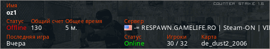 Последний раз был в сети Вчера Игрок с таким ником замечен на 6 серверах