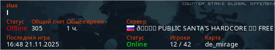 Последний раз был в сети 16:48 21.11.2025 Игрок с таким ником замечен на 42 серверах