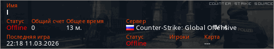 Играет на Counter Strike Source сервере. Страна: РоссияПервый раз замечен 18:54 10.03.2026