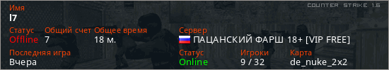 Последний раз был в сети Вчера Игрок с таким ником замечен на 10 серверах