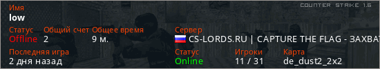 Последний раз был в сети 2 дня назад Игрок с таким ником замечен на 28 серверах