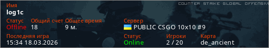 Играет на Counter Strike Global Offensive сервере. Страна: УкраинаПервый раз замечен 14:58 18.03.2026