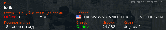 Последний раз был в сети 17 часов назад Игрок с таким ником замечен на 28 серверах