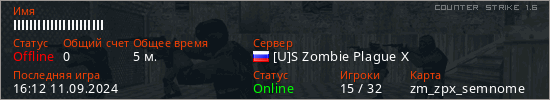Играет на Counter Strike 1.6 сервере. Страна: РоссияПервый раз замечен 15:51 11.09.2024