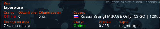 Играет на Counter Strike Global Offensive сервере. Страна: РоссияПервый раз замечен 22:33 24.03.2026