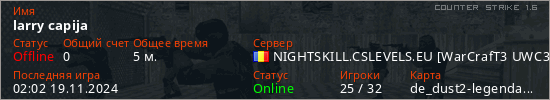Играет на Counter Strike 1.6 сервере. Страна: РумынияПервый раз замечен 01:58 19.11.2024