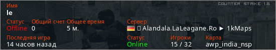 Последний раз был в сети 13 часов назад Игрок с таким ником замечен на 20 серверах