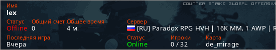 Играет на Counter Strike Global Offensive сервере. Страна: РоссияПервый раз замечен 19:10 04.03.2026