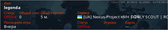 Последний раз был в сети Вчера Игрок с таким ником замечен на 44 серверах