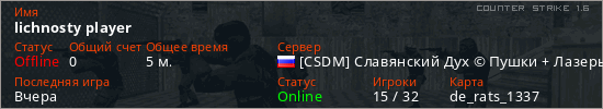 Последний раз был в сети Вчера Игрок с таким ником замечен на 12 серверах