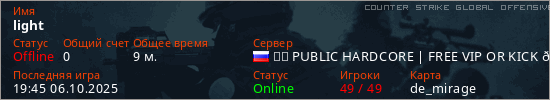 Играет на Counter Strike Global Offensive сервере. Страна: РоссияПервый раз замечен 18:33 06.10.2025