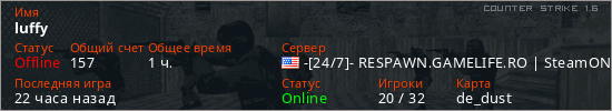 Последний раз был в сети 20 часов назад Игрок с таким ником замечен на 36 серверах