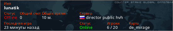 Последний раз был в сети 8 часов назад Игрок с таким ником замечен на 12 серверах