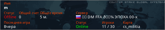 Играет на Counter Strike Global Offensive сервере. Страна: РоссияПервый раз замечен 06:29 06.03.2026