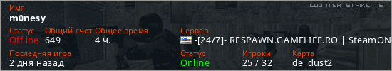 Играет на Counter Strike 1.6 сервере. Страна: СШАПервый раз замечен 17:56 24.04.2025
