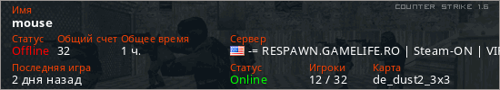 Играет на Counter Strike 1.6 сервере. Страна: СШАПервый раз замечен 16:34 27.02.2025