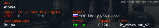 Играет на Counter Strike Source сервере. Страна: РоссияПервый раз замечен 19:28 02.02.2026