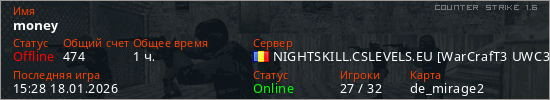 Играет на Counter Strike 1.6 сервере. Страна: РумынияПервый раз замечен 12:30 18.01.2026